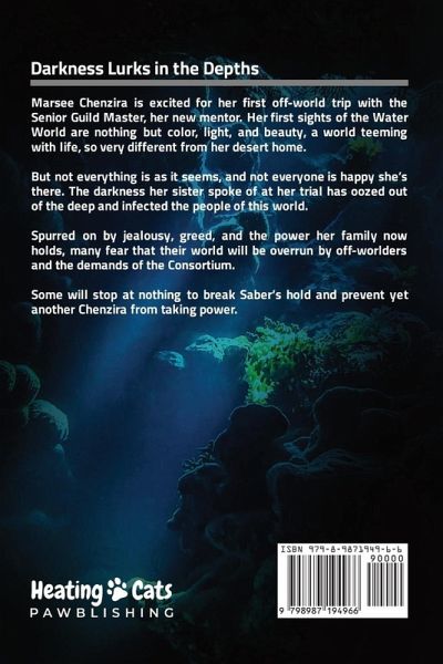 Darkness Lurks in the Depths Marsee Chenzira is excited for her first off-world trip with the Senior Guild Master, her new mentor. Her first sights of the Water World are nothing but color, light, and beauty, a world teeming with life, so very different from her desert home, but not everything is as it seems and not everyone is happy she's there. The darkness her sister spoke of at her trial has oozed out of the deep and infected the people of this world. Spurred on by jealousy and greed, and the power her family now holds, many fear that their world will be overrun by off-worlders and the demands of the Consortium, some will stop at nothing to break Saber's hold and prevent yet another Chenzira from taking power.