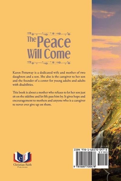 Karen Pettaway is a dedicated wife and mother of two daughters and a son. She also is the caregiver to her son and the founder of a center for young adults and adults with disabilities. This book is about a mother who refuses to let her son just sit on the sideline and let life pass him by. It gives hope and encouragement to mothers and anyone who is a caregiver to never ever give up on them.