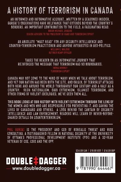 A History of Terrorism in Canada from Confederation to Present Canada may not come to the mind of many when we talk about terrorism. And yet it has been both the site, and origin, of terrorist attacks both here and around the world throughout our century and a half as a country. Irish nationalism, Sikh extremism, Islamist terrorism, and other forms of violent ideologies, we've seen them all. This book looks at our history with violent extremism through the lens of the women and men who are responsible for preventing it, and saving the lives of Canadians and others. A look behind the curtain of security intelligence and law enforcement, readers will learn of never-before-shared details on counter-terrorism.