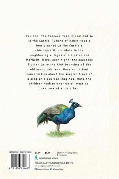 You see, The Peacock Tree is real and so is the Castle. Rumors of Robin Hood's bow-stashed up the Castle's chimney-still circulate in the neighboring villages of Helpston and Marholm. Here, each night, the peacocks flutter up to the high branches of the old proud oak tree. Here an ancient conversation about the simpler times of a simpler place was imagined. Here the children realize what we all must do: take care of each other.