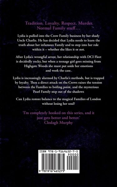 Tradition. Loyalty. Respect. Murder. Normal Family stuff... Lydia is pulled into the Crow Family business by her shady Uncle Charlie. He has decided that Lydia needs to learn the truth about her infamous Family and to step into her role within it - whether she likes it or not. After Lydia's wrongful arrest, her relationship with DCI Fleet is decidedly rocky, but when a teenage girl goes missing from Highgate Woods she must put aside her emotions and work the case. Lydia is increasingly alarmed by Charlie's methods, but is trapped by loyalty. Then a direct attack on the Crows raises the tension between the Families to boiling point, and the mysterious Pearl Family step out of the shadows. Can Lydia restore balance to the magical Families of London without losing her soul? Don't miss the exciting fourth instalment in the bestselling urban fantasy mystery series, Crow Investigations. Praise for the series: 'All my favourite things together- mystery, crime, a sassy female PI and a Magical underworld going on right under Londoner's noses.' A.L. Michael 'I'm completely hooked on this series, and it just gets better and better...' Clodagh Murphy