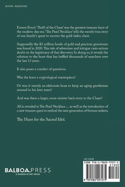 Forrest Fenn's 'Thrill of the Chase' was the greatest treasure hunt of the modern-day era. 'The Pearl Necklace' tells the mostly true story of one family's quest to recover the gold-laden chest. Supposedly the $2 million horde of gold and precious gemstones was found in 2020. This tale of adventure and intrigue casts serious doubt on the legitimacy of that discovery. In doing so, it reveals the solution to the hunt that has baffled thousands of searchers over the last 13 years. It also poses a number of questions. Was the hunt a cryptological masterpiece? Or was it merely an elaborate hoax to keep an aging gentleman amused in his later years? And was there a larger, more sinister back story to the Chase? All is revealed in The Pearl Necklace as well as the introduction of a new treasure quest to enthral the next generation of fortune seekers The Hunt for the Sacred Idol.