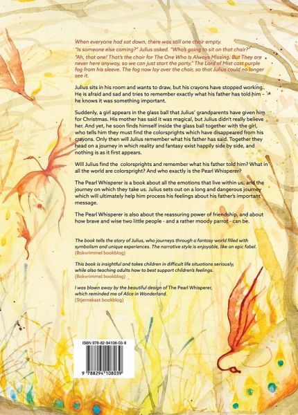 The Pearl Whisperer is a richly woven, magical adventure that speaks to both the imagination of children and the emotions of adults. Julius, a sensitive seven-year-old boy, finds himself in turmoil when his colored pencils suddenly stop working. Drawing has always been his way of making sense of his feelings-especially when loneliness, anger, or sadness feel too heavy to carry. But when his mother leaves once again and his father delivers news Julius can't quite grasp, even his drawings abandon him. Then, one winter's evening, Julius discovers that his grandparents' snow globe holds a hidden secret. Inside it lives Soh, a bright, mysterious girl with braids and a spark in her eyes, who has been waiting for him. And to Julius' astonishment, his beloved stuffed parrot Pappus springs to life-feathers, voice, and all. Together the three set off on a fantastical quest to find the lost Colorsprights, the tiny beings that give pencils their colors. To bring them back, they must locate the Hiding Chest, a task that requires three magical keys hidden across breathtaking landscapes. Their journey takes them through the Flaming Forest, alive with shimmering fire-leaves and mischievous dragons; across the deceptive domains of the vain Lord of the Mist; into Diamanen's glittering yet treacherous garden; and finally toward the mysterious Pearl Falls, where only the enigmatic Pearl Whisperer can guide them. Along the way, Julius must face challenges that mirror his own inner struggles-fear of loss, longing for connection, and the courage to hold on to who he truly is. Illustrated with warmth and detail, The Pearl Whisperer is not just an enchanting fantasy tale but also a story about friendship, resilience, and the healing power of creativity. It is a book for readers of all ages who believe in the magic of imagination and the strength found in facing both real and inner worlds with an open heart. The second book in the series is called The Night Garden.