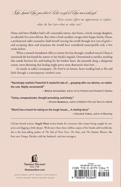 From Christy Award-winning author Angela Hunt comes a poignant and provocative story about loss, love, and the price of playing God. Diana Sheldon thought she had the perfect life--a thriving career as a radio counselor, a loving husband, and two beautiful children. But when tragedy strikes, her world shatters beyond recognition. Grief consumes her, and for the first time, Diana finds herself questioning everything she once believed. When a cutting-edge research foundation offers her the chance to reclaim what she's lost through a groundbreaking scientific procedure, Diana can't resist the promise of hope. But as she edges closer to an impossible decision, she begins to realize that the path to healing may cost her more than she ever imagined. Raw, timely, and emotionally charged, The Pearl examines the tension between faith and science--and what it truly means to trust God when everything is on the line, perfect for readers of Jodi Picoult's My Sister's Keeper and Robin Lee Hatcher's The Forgiving Hour.