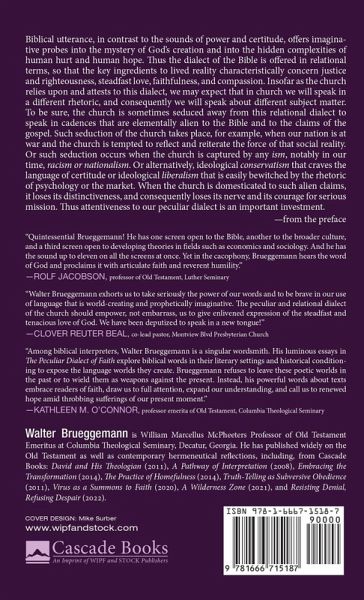 Biblical utterance, in contrast to the sounds of power and certitude, offers imaginative probes into the mystery of God's creation and into the hidden complexities of human hurt and human hope. Thus the dialect of the Bible is offered in relational terms, so that the key ingredients to lived reality characteristically concern justice and righteousness, steadfast love, faithfulness, and compassion. Insofar as the church relies upon and attests to this dialect, we may expect that in church we will speak in a different rhetoric, and consequently we will speak about different subject matter. To be sure, the church is sometimes seduced away from this relational dialect to speak in cadences that are elementally alien to the Bible and to the claims of the gospel. Such seduction of the church takes place, for example, when our nation is at war and the church is tempted to reflect and reiterate the force of that social reality. Or such seduction occurs when the church is captured by any ism, notably in our time, racism or nationalism. Or alternatively, ideological conservatism that craves the language of certitude or ideological liberalism that is easily bewitched by the rhetoric of psychology or the market. When the church is domesticated to such alien claims, it loses its distinctiveness, and consequently loses its nerve and its courage for serious mission. Thus attentiveness to our peculiar dialect is an important investment. --from the Preface