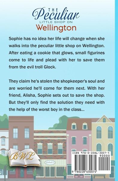 Sophie has no idea her life will change when she walks into the peculiar little shop on Wellington. After eating a cookie that glows, small figurines come to life and plead with her to save them from the evil gnome Glock. They claim he's stolen the shopkeeper's soul and are worried he'll come for them next. With her friend, Alisha, Sophie sets out to save the shop. But they'll only find the solution they need with the help of the worst boy in the class.