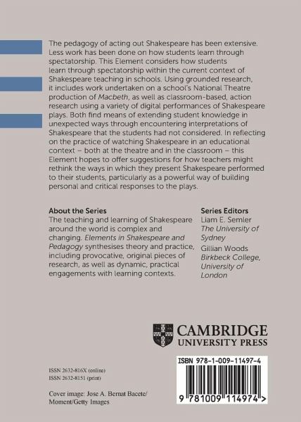 This Element offers suggestions for how teachers might re-think the ways in which they present Shakespeare performed to their students particularly as a powerful way of building personal and critical responses to the plays.