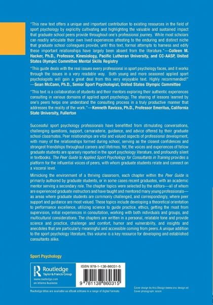 Successful sport psychology professionals have benefitted from stimulating conversations, challenging questions, support, camaraderie, guidance, and advice offered by their graduate school classmates. Peer relationships are vital and valued aspects of professional development, with many of the relationships formed during school, serving as the closest confidences and strongest friendships throughout careers and lifetimes. Yet, the voices and experiences of fellow graduate students are sparsely reported in the sport psychology literature, and profoundly silent in textbooks. The Peer Guide to Applied Sport Psychology for Consultants in Training provides a platform for the influential voices of peers, with whom graduate students relate and connect on a visceral level.