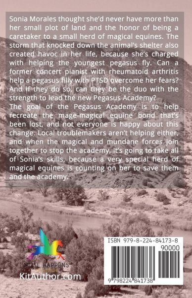 Sonia Morales thought she'd never have more than her small plot of land and the honor of being a caretaker to a small herd of magical equines. The storm that knocked down the animal's shelter also created havoc in her life, because she's charged with helping the youngest pegasus fly. Can a former concert pianist with rheumatoid arthritis help a pegasus filly with PTSD overcome her fears? And if they do so, can they be the duo with the strength to lead the new Pegasus Academy? The goal of the Pegasus Academy is to help recreate the mage-magical equine bond that's been lost, and not everyone is happy about this change. Local troublemakers aren't helping either, and when the magical and mundane forces join together to stop the academy, it's going to take all of Sonia's skills, because a very special herd of magical equines is counting on her to save them and the academy. This title contains all four books in the Pegasus Enchantment series.