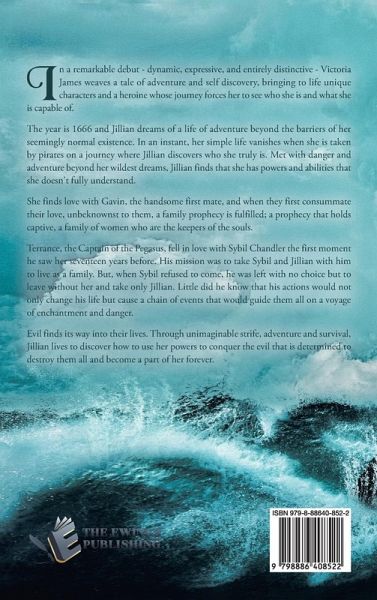 In a remarkable debut - dynamic, expressive, and entirely distinctive - Victoria James weaves a tale of adventure and self discovery, bringing to life unique characters and a heroine whose journey forces her to see who she is and what she is capable of. The year is 1666 and Jillian dreams of a life of adventure beyond the barriers of her seemingly normal existence. In an instant, her simple life vanishes when she is taken by pirates on a journey where Jillian discovers who she truly is. Met with danger and adventure beyond her wildest dreams, Jillian finds that she has powers and abilities that she doesn't fully understand. She finds love with Gavin, the handsome first mate, and when they first consummate their love, unbeknownst to them, a family prophecy is fulfilled; a prophecy that holds captive, a family of women who are the keepers of the souls. Terrance, the Captain of the Pegasus, fell in love with Sybil Chandler the first moment he saw her seventeen years before. His mission was to take Sybil and Jillian with him to live as a family. But, when Sybil refused to come, he was left with no choice but to leave without her and take only Jillian. Little did he know that his actions would not only change his life but cause a chain of events that would guide them all on a voyage of enchantment and danger. Evil finds its way into their lives. Through unimaginable strife, adventure and survival, Jillian lives to discover how to use her powers to conquer the evil that is determined to destroy them all and become a part of her forever.