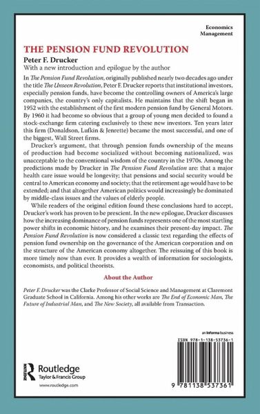 In The Pension Fund Revolution, originally published nearly two decades ago under the title The Unseen Revolution, Drucker reports that institutional investors, especially pension funds, have become the controlling owners of America's large companies, the country's only capitalists
