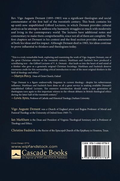 Rev. Vigo Auguste Demant (1893-1983) was a significant theologian and social commentator of the first half of the twentieth century. This book contains his up-until-now unpublished Gifford Lectures, in which Demant provides cultural analysis as he attempts to address why humanity struggles so much with modernity and living in the contemporary world. The lectures have additional notes and commentary to make them comprehensible, since not all of them are complete. The first chapters set Demant in his context and the final section provides assessment of both his ideas and his impact. Although Demant died in 1983, his ideas continue to prove influential to thinkers and theologians today.