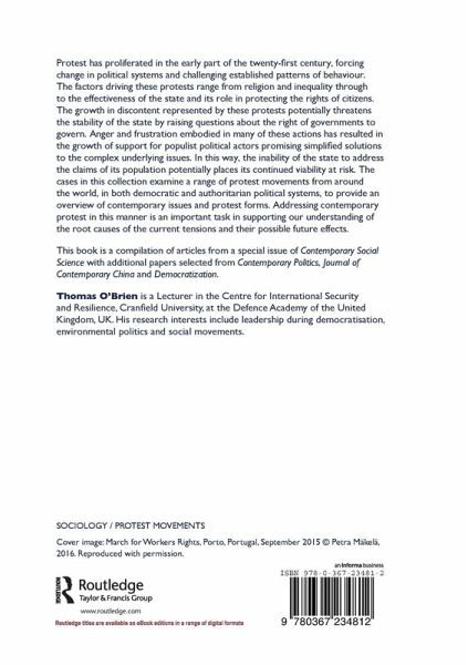 Protest has proliferated in the early part of the twenty-first century, forcing change in political systems and challenging established patterns of behaviour. The factors driving these protests range from religion and inequality through to the effectiveness of the state and its role in protecting the rights of citizens. The growth in discontent represented by these protests potentially threatens the stability of the state by raising questions about the right of governments to govern. Anger and frustration embodied in many of these actions has resulted in the growth of support for populist political actors promising simplified solutions to the complex underlying issues. In this way, the inability of the state to address the claims of its population potentially places its continued viability at risk. The cases in this collection examine a range of protest movements from around the world, in both democratic and authoritarian political systems, to provide an overview of contemporary issues and protest forms. Addressing contemporary protest in this manner is an important task in supporting our understanding of the root causes of the current tensions and their possible future effects. This book is a compilation of articles from a special issue of Contemporary Social Science with additional papers selected from Contemporary Politics, Journal of Contemporary China and Democratization.