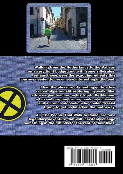 Walking from the Netherlands to the Vatican on a very tight budget and with some silly rules. Perhaps those were the exact ingredients this journey needed to become so interesting in the end. I had the pleasure of meeting quite a few colourful personalities during my walk, like: a Norwegian teacher on his trip to Bethlehem, a Luxembourgian former monk on a mission and a French alcoholic who couldn't resist trying to get us killed on the motorway. All 'The People That Walk to Rome' are on a legendary adventure that will inevitably change something in their minds for the rest of their lives.