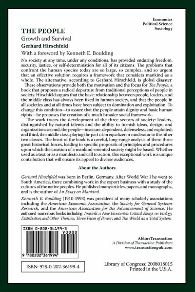 No society at any time, under any conditions, has provided enduring freedom, security, justice, or self-determination for all of its citizens. The problems that confront the human species today are so large, so complex, and so urgent that an effective solution requires a framework that considers mankind as a whole. The alternative, according to Gerhard Hirschfeld, is global disaster. These observations provide both the motivation and the focus for The People, a book that proposes a radical departure from traditional perceptions of people in society. Hirschfeld argues that the basic relationship between people, leaders, and the middle class has always been fixed in human society, and that the people in all societies and at all times have been subject to domination and exploitation. To change this condition--to assure that the people attain dignity and basic human rights--he proposes the creation of a much broader social framework. The work traces the development of the three sectors of society: leaders, distinguished by natural talents and the ability to furnish ideas, design, and organization; second, the people--insecure, dependent, defenseless, and exploited; and third, the middle class, playing the part of an equalizer or moderator to the other two classes. The heart of the book is a careful, long-range analysis of these three great historical forces, leading to specific proposals of principles and procedures upon which the creation of a mankind-oriented society might be based. Whether used as a text or as a manifesto and call to action, this exceptional work is a unique contribution that will ensure its appeal to diverse audiences.
