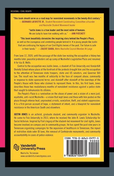 From June 12, 2020, until the passage of the state law making the occupation a felony two months later, peaceful protesters set up camp at Nashville's Legislative Plaza and renamed it for Ida B. Wells. Central to the occupation was Justin Jones, a student of Fisk University and Vanderbilt Divinity School whose place at the forefront of the protests brought him and the occupation to the attention of the Tennessee state troopers, state and US senators, and Governor Bill Lee. The result was two months of solidarity in the face of rampant abuse, community in the face of state-sponsored terror, and standoff after standoff at the doorsteps of the people's house with those who claimed to represent them. In this, his first book, Jones describes those two revolutionary months of nonviolent resistance against a police state that sought to dehumanize its citizens. The People's Plaza is a rumination on the abuse of power, and a vision of a more just, equitable, anti-racist Nashville-a vision that kept Jones and those with him posted on the plaza through intense heat, unprovoked arrests, vandalism, theft, and violent suppression. It is a first-person account of hope, a statement of intent, and a blueprint for nonviolent resistance in the American South and elsewhere.