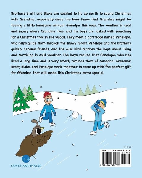Brothers Brett and Blake are excited to fly up north to spend Christmas with Grandma, especially since the boys know that Grandma might be feeling a little lonesome without Grandpa this year. The weather is cold and snowy where Grandma lives, and the boys are tasked with searching for a Christmas tree in the woods. They meet a partridge named Penelope, who helps guide them through the snowy forest. Penelope and the brothers quickly become friends, and the wise bird teaches the boys about living and surviving in cold weather. The boys realize that Penelope, who has lived a long time and is very smart, reminds them of someone-Grandma! Brett, Blake, and Penelope work together to come up with the perfect gift for Grandma that will make this Christmas extra special.