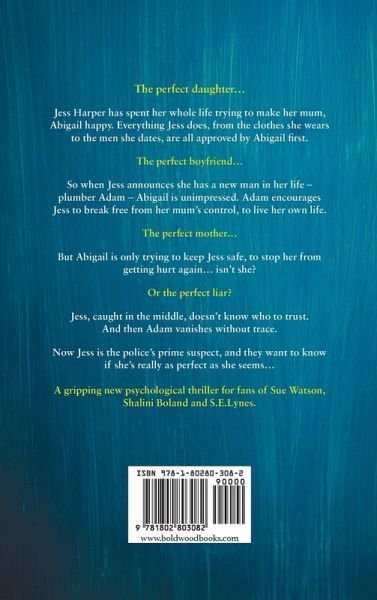 Cleverly written. Powerful, shocking, totally believable. 5⭐⭐⭐⭐⭐ Bestselling author Sheryl Brown. The perfect daughter... Jess Harper has spent her whole life trying to make her mum, Abigail happy and proud. And everything Jess does, from the clothes she wears, the job she has, the men she dates, are all approved by Abigail first. The perfect boyfriend... So when Jess announces that she has a new man in her life - plumber Adam - Abigail is less than impressed. 'A plumber? Really, Jessica....' Adam encourages Jess to break free from her mum's manipulation, can't she see what's happening? The perfect mother.... But Abigail is only doing these things to keep Jess safe, to protect her from getting hurt again...isn't she? Or the perfect liar? Jess, caught in the middle, doesn't know who to believe or trust. And then Adam vanishes without trace. Now Jess is the police's prime suspect and they want to know if Jess really is as perfect as she seems.... A gripping new psychological thriller for fans of Sue Watson, Shalini Boland and S.E.Lynes Chillingly Compelling 5 ⭐⭐⭐⭐⭐ Bestselling author Diane Saxon A brilliant debut 5 ⭐⭐⭐⭐⭐ Bestselling author Erin Green Fantastic read 5 ⭐⭐⭐⭐⭐ Life coach and author Lisa Phillips