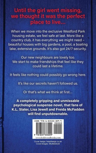 Until the girl went missing, we thought it was the perfect place to live... When we move into the exclusive Westford Park housing estate, we feel safe at last. More like a country club, it has everything we might need - beautiful houses with big gardens, a pool, a boating lake, extensive grounds. It's also got 24/7 security. Our new neighbours are lovely too. We start to make friendships that feel like they could last a lifetime. It feels like nothing could possibly go wrong here. It's like our secrets haven't followed us here. Or that's what we think at first... A completely gripping and unmissable psychological suspense novel, that fans of KL Slater, Lisa Jewell and Freida McFadden will find unputdownable. Praise for Natasha Boydell: 'Wow! What a brilliant book!! Is it crazy to say this might be my favourite read of 2024 even though it's only January? The suspense, the doubt, THE PLOT TWISTS!! I absolutely loved the characters, loved the story, loved everything about this book. This was my first by Natasha Boydell and now I am running to read more by her! 5 stars!!' Goodreads reviewer ⭐⭐⭐⭐⭐ 'This book blew me away. I love books that grab you from the beginning and hold on so tightly that you cannot put the book down... The ending was explosive and was not predictable at all. I love, love, love this author and cannot wait for more.' Goodreads reviewer ⭐⭐⭐⭐⭐ 'Literally picked this book up in the morning and began to read it and before I knew it I was finishing it later that evening. It's that addicting , honestly I found this so hard to put down. Every page that went past, I was frightened, I was dreading what was coming next. I could never have predicted the outcome. I'm still in shock, it's crazy. The suspense oh my god!... This book is incredible... I would definitely say this has got to be one of my favourite books ever!!' Goodreads reviewer ⭐⭐⭐⭐⭐
