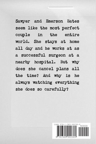 Sawyer and Emerson Bates seem like the most perfect couple in the entire world. She stays at home all day and he works at as a successful surgeon at a nearby hospital. But why does she cancel plans all the time? And why is he always watching everything she does so carefully?