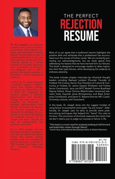 Most of us can agree that a traditional resume highlights the positive skills and attributes that a professional has accumulated over the course of his/her career. We are constantly promoting our acknowledgments, but we rarely spend time addressing the lessons that we have learned from our failures. This book is designed to encourage readers to draw inspiration from their past failures while developing the audacity to embrace adversity. In this book, Dr. Joseph dives into the rugged mindset of using failure to accomplish one's goals "by any means". Additionally, Dr. Joseph uses his story to provide some problem-solving techniques that helped him "bend" the rules in his favor. The conclusion of this book reassures the notion that we don't need a jury to judge our success or failure in life.