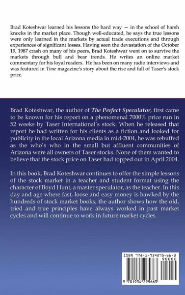Brad Koteshwar, the author of The Perfect Speculator, first came to be known for his report on a phenomenal 7000% price run in 52 weeks by Taser International's stock. When he released that report he had written for his clients as a fiction and looked for publicity in the local Arizona media, he was rebuffed as the who's who in the small but affluent communities of Arizona were all owners of Taser stocks. None of them wanted to believe that the stock price on Taser had topped out in April 2004.In this book, Brad Koteshwar continues the simple lessons of the stock market in a teacher and student format using the character of Boyd Hunt, a master speculator, as the teacher. In this day and age where fast, loose and easy money is hawked by the hundreds of stock market books, the author shows how the old, tried and true principles have always worked in past market cycles and will continue to work in future market cycles. For more about the author's other books, please visit https: //bradkoteshwar.com/.