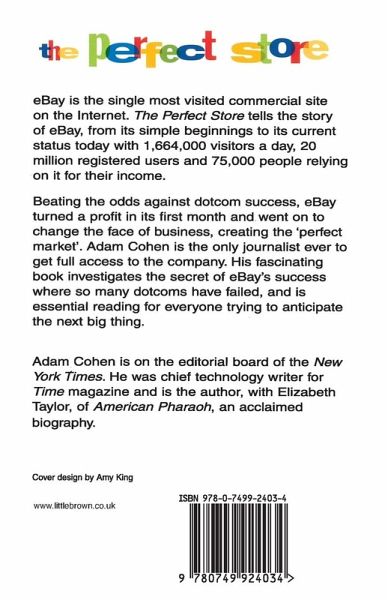 Ebay (www.ebay.com) is the single most visited commercial site on the internet - and one of the most successful. The Perfect Store tells the story of eBay's humble beginnings, launched from a spare bedroom in Pierre Omidyar's house, to its current status today - with 1,664,000 visitors a day, 20 million registered users and 75,000 people relying on eBay for their income. eBay started as a way to help Omidyar's fiancee trade with other collectors. It turned a profit in its first month and went on to change the face of business, creating the 'perfect market'. Reveals details of the company's rapid rise and the fascinating impact it has had on its users through the virtual marketplace. Examines the range of customers, from the woman who wakes at 3.00am to bid on a toaster, to the woman who had to rent a warehouse for her thriving business selling bubble-wrap.· Reveals why eBay has succeeded when so many dot-coms have failed. Provides essential reading for those trying to understand how the Web is changing business, and for those trying to anticipate the next big thing.