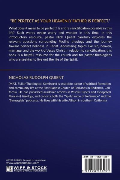 ""Be perfect as your heavenly Father is perfect."" What does it mean to be perfect? Is entire sanctification possible in this life? Such words evoke worry and wonder in this time. In this introductory resource, pastor Nick Quient carefully explores the relevant questions surrounding Pauline theology and the journey toward perfect holiness in Christ. Addressing topics like sin, heaven, marriage, and the work of Jesus Christ in relation to sanctification, this book is a helpful resource for the church and for pastor-theologians who are seeking to live out the life of the Spirit.