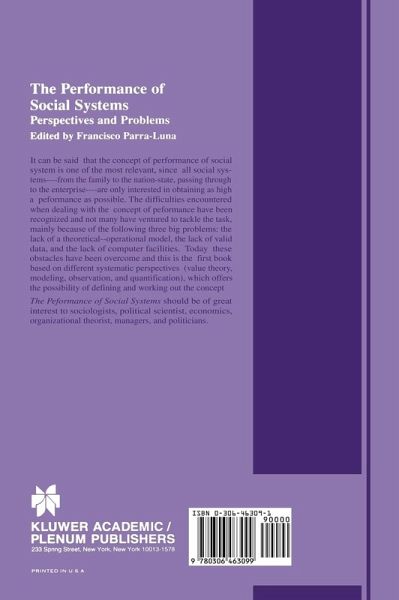 It can be said that the concept of performance of social systems is one of the most relevant, since all social systems - from the family, through the enterprise, to the Nation state - are only interesting in obtaining as high a performance as possible. The difficulties encountered when dealing with the concept of performance have been recognized and few books until now ventured to tackle the task, mainly because of the following three big problems: the lack of a theoretical-operational model; the lack of valid data; and the lack of computer facilities. Today these obstacles have been overcome and this is the first book based on different systemic perspectives (value theory, modelling, observation and quantification) which offers the possibility of defining and working out the concept.
