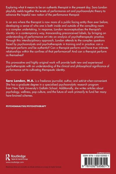 Exploring what it means to be an authentic therapist in the present day, Sara London playfully melds together the tenets of performance art and psychoanalytic theory to advance the hopeful new notion of the performance therapist.