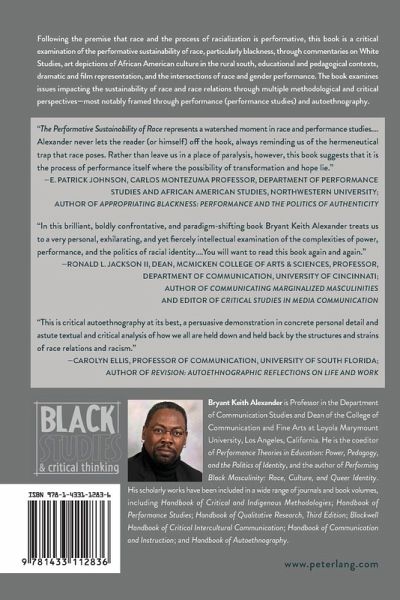 «'The Performative Sustainability of Race' represents a watershed moment in race and performance studies [...] Alexander never lets the reader (or himself) off the hook, always reminding us of the hermeneutical trap that race poses. Rather than leave us in a place of paralysis, however, this book suggests that it is the process of performance itself where the possibility of transformation and hope lie.» (E. Patrick Johnson, Carlos Montezuma Professor, Department of Performance Studies and African American Studies, Northwestern University; Author of 'Appropriating Blackness: Performance and the Politics of Authenticity')