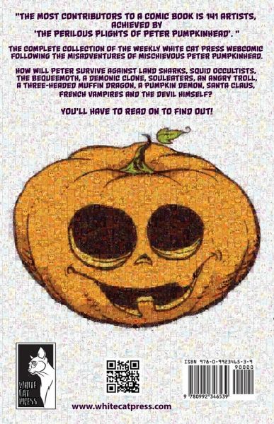 In 2016, The Guinness World Record for the ‘Most Contributors to a Published Comic Book’ was 141 artists achieved by ‘The Perilous Plights of Peter Pumpkinhead’. This award-winning comic book is finally available for release. Follow Peter Pumpkinhead as he tries to navigate his way through hordes of enemies like land sharks, squid occultists, the bequeemoth, a demonic clone, souleaters, an angry troll, a three-headed muffin dragon, a pumpkin demon, Santa Claus, French vampires and the Devil himself? Plus bonus never-before-seen special features.