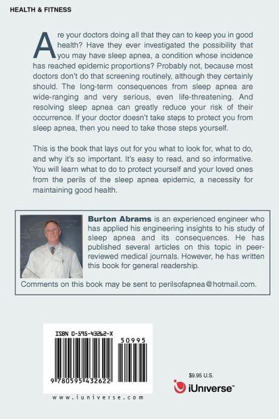Are your doctors doing all that they can to keep you in good health? Have they ever investigated the possibility that you may have sleep apnea, a condition whose incidence has reached epidemic proportions? Probably not, because most doctors don't do that screening routinely, although they certainly should. The long-term consequences from sleep apnea are wide-ranging and very serious, even life-threatening. And resolving sleep apnea can greatly reduce your risk of their occurrence. If your doctor doesn't take steps to protect you from sleep apnea, then you need to take those steps yourself. This is the book that lays out for you what to look for, what to do, and why it's so important. It's easy to read, and so informative. You will learn what to do to protect yourself and your loved ones from the perils of the sleep apnea epidemic, a necessity for maintaining good health.