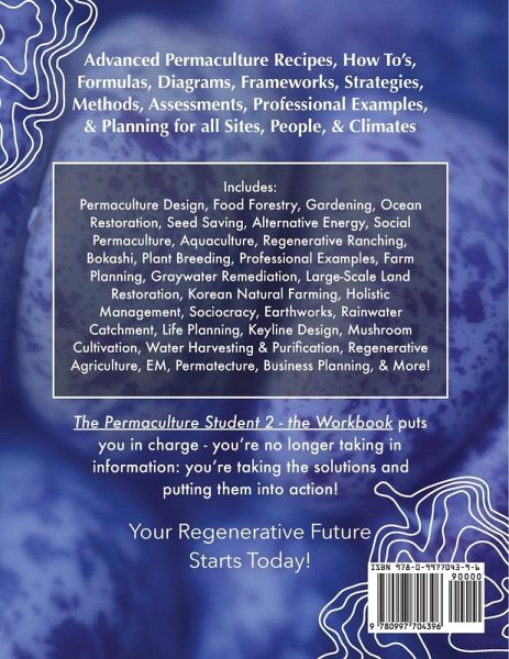 Are you looking for a holistic permaculture handbook that goes beyond the garden? The Permaculture Student 2 The Workbook spans the full regenerative spectrum of permaculture with advanced permaculture recipes, how to’s, formulas, diagrams, frameworks, strategies, methods, assessments, professional examples, & planning for all sites, people, & climates. This workbook extends and pairs with The Permaculture Student 2 The Textbook - a collection of regenerative solutions designed for advanced high school, college, and adult learners. A regenerative future is possible - using the practices found in this workbook, you can start a regenerative business, take your home off the grid, and begin living a regenerative lifestyle of abundance.