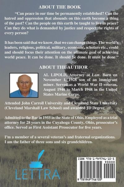 Can peace in our time be permanently established? Can the hatred and oppression that abounds on this earth become a thing of the past? Can the people on this earth be taught to live in peace? Can they do what is demanded by justice and respect the rights of every person? It has been said that we know, that we can change things. The world's leaders, religious, political, military, economic, scholars etc. could and should focus their attention on the ultimate goal of achieving world peace. it can be done. it should be done. It must be done.