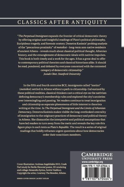Argues that immigration politics is a central - but overlooked - object of inquiry in the democratic thought of classical Athens. Thinkers criticized democracy's strategic investments in nativism, the shifting boundaries of citizenship, and the precarious membership that a blood-based order effects for those eligible and ineligible to claim it.