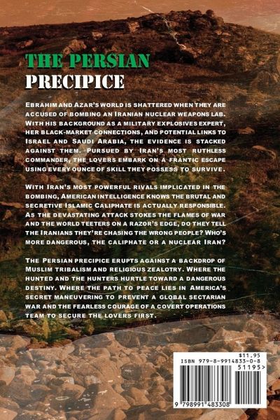 Ebrahim and Azar's world is shattered when they are accused of bombing an Iranian nuclear weapons lab. When Iran's most top-secret research facility is sabotaged during the testing of a nuclear device, it made it a radioactive tomb for more than a hundred souls and inflicted a devastating setback to their nuclear program. All of the evidence points to the two lovers: Ebrahim an electronics technician within the facility and Azar, his girlfriend, a representative of a major supplier to the Iranian Revolutionary Guard. With indications that the lovers received help from Saudi Arabia and Israel, the Muslim world teeters on the brink of chaos and a full-scale sectarian war. As Iran's most feared Revolutionary Guard commander pursues the two lovers, they must escape using guile and deception. But the chase won't be so easy. With the technician's background as a former explosives' ordinance expert and his girlfriend's network of contacts as a black-market supplier to the Iranian military, they are dangerous prey. The perfect set of skills the Caliphate operative needed to set them up to take the fall. Add to that the carefully constructed links to Iran's two most powerful regional rivals, it guarantees that the Iranian Revolutionary Guard will ruthlessly hunt down and eliminate the threat. To avoid certain death, the lovers must expose information neither knew about the other and risk revealing secrets that could tear them apart. But American intelligence knows it was actually the brutal Islamic Caliphate and must act quickly to prevent the embers of war from exploding into flames that could engulf the world. For the Americans, the Caliphate has thrown the world into chaos at the implication of Saudi Arabia working with the Israelis. Stoking the flames of war throughout the Muslim world, the Caliphate has stretched tribal affiliations nearly to their breaking point. As America desperately works to prevent that chaos from exploding into global sectarian war between Sunni and Shia sects of Islam, they must make an agonizing decision. Do they tell the Iranians they're chasing the wrong people? Who's more dangerous, the Caliphate or a nuclear capable Iran? The problems for American Intelligence services mounts. The years of funding cuts of human intelligence has left them nearly blind inside Iran forcing them to pursue a high-risk operation. They must insert a highly specialized covert operations team into Iran to gather intelligence on the aftermath of the terror attack and secure the lovers before the Iranians. All while keeping the drumbeat of war at bay. The Persian Precipice erupts against a backdrop of Muslim tribalism and religious zealotry. Where the hunted and the hunters hurtle toward a dangerous destiny. Where the path to peace lies in America's secret maneuvering to prevent a global sectarian war and the fearless courage of a covert operations team to secure the lovers first.