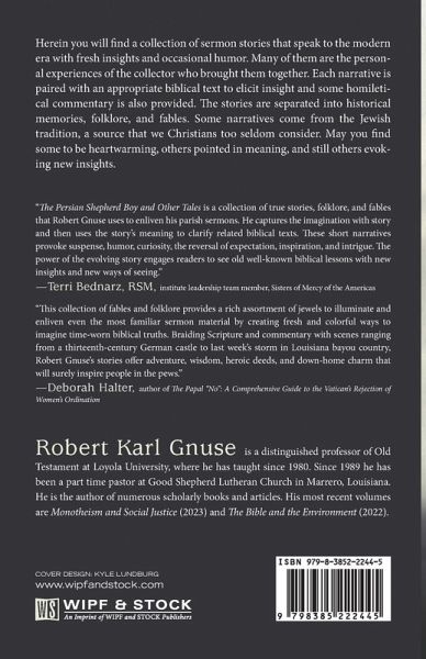 Herein you will find a collection of sermon stories that speak to the modern era with fresh insights and occasional humor. Many of them are the personal experiences of the collector who brought them together. Each narrative is paired with an appropriate biblical text to elicit insight and some homiletical commentary is also provided. The stories are separated into historical memories, folklore, and fables. Some narratives come from the Jewish tradition, a source that we Christians too seldom consider. May you find some to be heartwarming, others pointed in meaning, and still others evoking new insights.