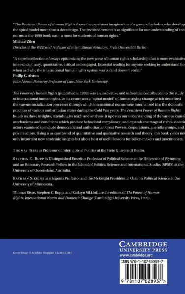 The Power of Human Rights (published in 1999) was an innovative and influential contribution to the study of international human rights. At its center was a 'spiral model' of human rights change which described the various socialization processes through which international norms were internalized into the domestic practices of various authoritarian states during the Cold War years. The Persistent Power of Human Rights builds on these insights, extending its reach and analysis. It updates our understanding of the various causal mechanisms and conditions which produce behavioural compliance, and expands the range of rights-violating actors examined to include democratic and authoritarian Great Powers, corporations, guerrilla groups, and private actors. Using a unique blend of quantitative and qualitative research and theory, this book yields not only important new academic insights but also a host of useful lessons for policy-makers and practitioners.