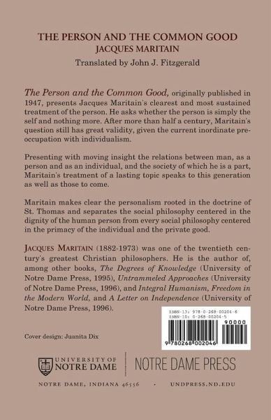 Presenting with moving insight the relations between man, as a person and as an individual, and the society of which he is a part, Maritain's treatment of a lasting topic speaks to this generation as well as those to come.
