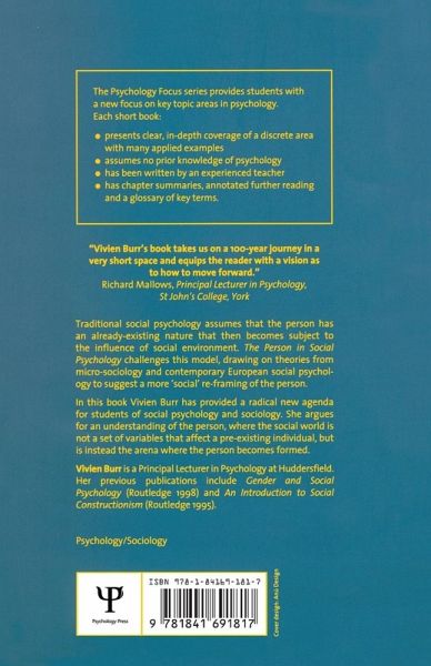 Traditional social psychology assumes that the person has an already-existing nature that then becomes subject to the influence of the social environment. The Person in Social Psychology challenges this model, drawing on theories from micro-sociology and contemporary European social psychology to suggest a more 'social' re-framing of the person. In this book Vivien Burr has provided a radical new agenda for students of social psychology and sociology. Using concepts familiar to the social psychologist, such as norms, roles, demand characteristics and labelling, she argues for an understanding of the person where the social world is not a set of variables that affect a pre-existing individual, but is instead the arena where the person becomes formed.