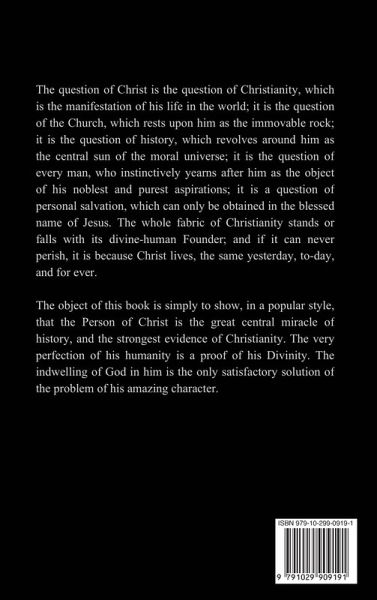 The question of Christ is the question of Christianity, which is the manifestation of his life in the world; it is the question of the Church, which rests upon him as the immovable rock; it is the question of history, which revolves around him as the central sun of the moral universe; it is the question of every man, who instinctively yearns after him as the object of his noblest and purest aspirations; it is a question of personal salvation, which can only be obtained in the blessed name of Jesus. The whole fabric of Christianity stands or falls with its divine-human Founder; and if it can never perish, it is because Christ lives, the same yesterday, to-day, and for ever.The object of this book is simply to show, in a popular style, that the Person of Christ is the great central miracle of history, and the strongest evidence of Christianity. The very perfection of his humanity is a proof of his Divinity. The indwelling of God in him is the only satisfactory solution of the problem of his amazing character.