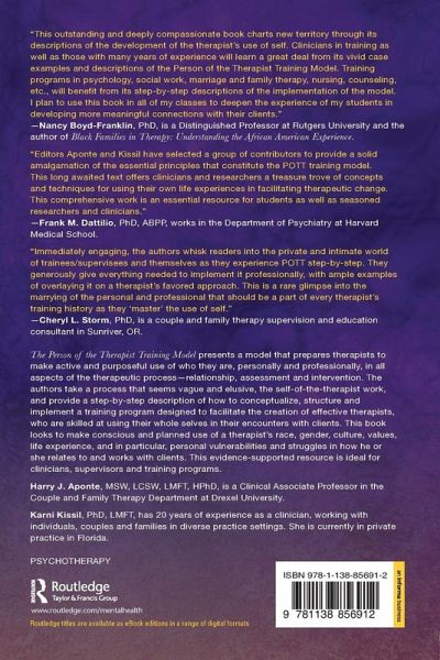 Editors Aponte and Kissil have culled a group of contributors to provide a solid amalgamation of the essential principles that constitute the POTT training model. This long awaited text offers clinicians and researchers a treasure trove of concepts and techniques for using their own life experiences in facilitating therapeutic change. This comprehensive work is an essential resource for students as well as seasoned researchers and clinicians.-Frank M. Dattilio, PhD, ABPP, works in the Department of Psychiatry at Harvard Medical School.