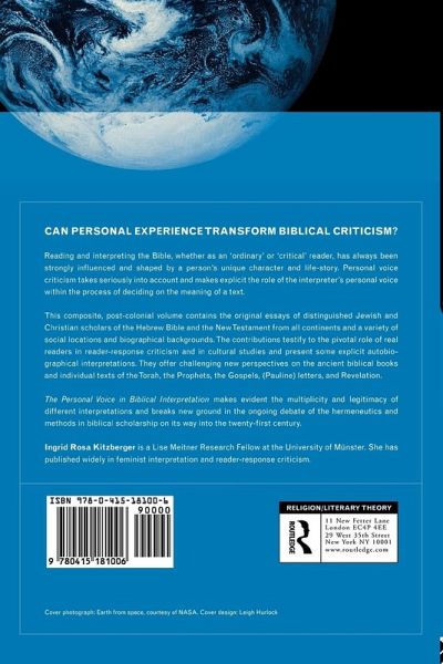 Reading and interpreting the Bible, whether as an 'ordinary' or critical reader, has always been strongly influenced by a person's own experience. They demonstrate the variety of ways in which the Bible can have meaning for different people. The contributors offer challenging new perspectives on the ancient biblical books and individual texts of the Torah, the prophets, the Gospels, (Pauline) letters and Revelation. The Personal Voice in Biblical Scholarship contains the original essays of distinguished Jewish and Christian scholars of the Hebrew Bible and the New Testament from all over the world and a variety of backgrounds.