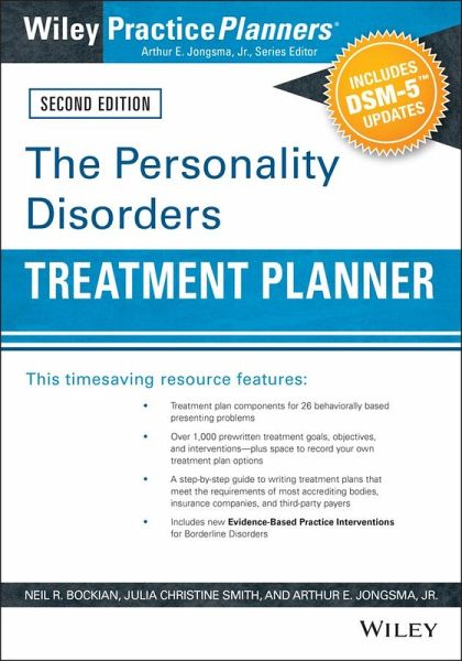 Approaching personality disorders with evidence-based treatment plans The Personality Disorders Treatment Planner, 2nd Edition is fully updated to meet the changing needs of the mental healthcare field. A time-saver for psychologists, counselors, social workers, psychiatrists, and other mental health professionals, this new edition offers the tools you need to develop formal treatment plans that meet the demands of HMOs, managed care companies, third-party payors, and state and federal agencies. Organized around twenty-six presenting problems, the easy-to-use format and over 1,000 prewritten symptom descriptions, treatment goals, objectives, and interventions makes the task of developing an evidence-based treatment plan more efficient than ever. The treatment of mental health disorders is rapidly evolving, and new evidence-based protocols are being adopted by federal and state organizations. You are now required to closely monitor patient progress, and you may feel pressure to stick to standardized care and reporting procedures; however, you can only do so if you have access to the latest in evidence-based treatment plans. * Updated with new and revised evidence-based Objectives and Interventions * Integrated DSM-5 diagnostic labels and ICD-10 codes into the Diagnostic Suggestions section of each chapter * Many more suggested homework assignments integrated into the Interventions * An Appendix demonstrates the use of the personality disorders Proposed Dimensional System of DSM-5. * Expanded and updated self-help book list in the Bibliotherapy Appendix * Revised, expanded and updated Professional Reference Appendix * New Recovery Model Appendix D listing Objectives and Interventions allowing the integration of a recovery model orientation into treatment plans