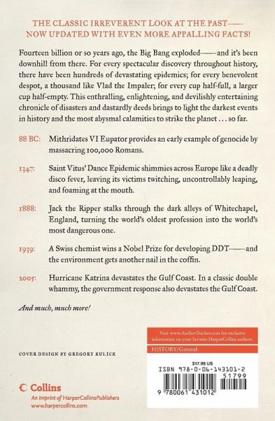 The classic irreverent look at the past--now updated with even more appalling facts! Fourteen billion or so years ago, the Big Bang exploded--and it's been downhill from there. For every spectacular discovery throughout history, there have been hundreds of devastating epidemics; for every benevolent despot, a thousand like Vlad the Impaler; for every cup half-full, a larger cup half-empty. This enthralling, enlightening, and devilishly entertaining chronicle of disasters and dastardly deeds brings to light the darkest events in history and the most abysmal calamities to strike the planet . . . so far. 88 BC: Mithridates VI Eupator provides an early example of genocide by massacring 100,000 Romans. 1347: Saint Vitus' Dance Epidemic shimmies across Europe like a deadly disco fever, leaving its victims twitching, uncontrollably leaping, and foaming at the mouth. 1888: Jack the Ripper stalks through the dark alleys of Whitechapel, England, turning the world's oldest profession into the world's most dangerous one. 1939: A Swiss chemist wins a Nobel Prize for developing DDT--and the environment gets another nail in the coffin. 2005: Hurricane Katrina devastates the Gulf Coast. In a classic double whammy, the government response also devastates the Gulf Coast. And much, much more!