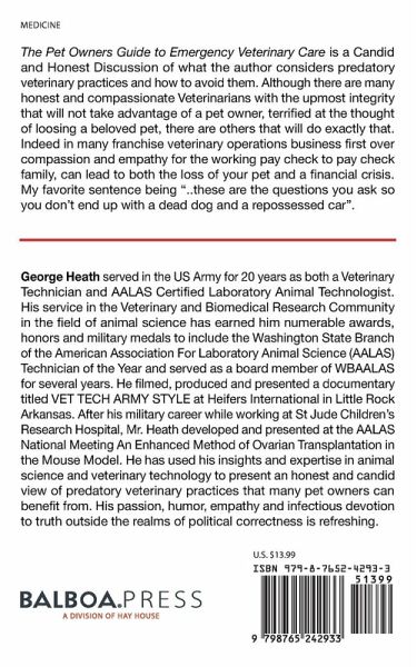 The Pet Owners Guide to Emergency Veterinary Care is a Candid and Honest Discussion of what the author considers predatory veterinary practices and how to avoid them. Although there are many honest and compassionate Veterinarians with the upmost integrity that will not take advantage of a pet owner, terrified at the thought of loosing a beloved pet, there are others that will do exactly that. Indeed in many franchise veterinary operations business first over compassion and empathy for the working pay check to pay check family, can lead to both the loss of your pet and a financial crisis. My favorite sentence being "..these are the questions you ask so you don't end up with a dead dog and a repossessed car".