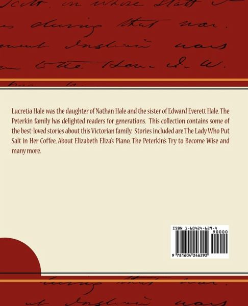 Lucretia Hale was the daughter of Nathan Hale and the sister of Edward Everett Hale. The Peterkin family has delighted readers for generations. This collection contains some of the best-loved stories about this Victorian family. Stories included are The Lady Who Put Salt in Her Coffee, About Elizabeth Eliza's Piano, The Peterkin's Try to Become Wise and many more.