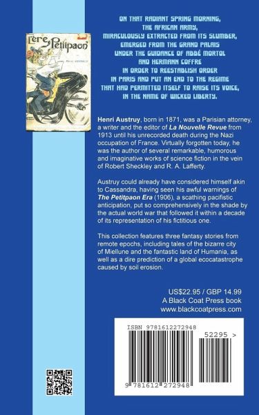 Henri Austry, born in 1871, was a Parisian attorney, a writer and the editor of La Nouvelle Revue from 1913 until his unrecorded death during the Nazi occupation of France. Virtually forgotten today, he was the author of several remarkable, humorous and imaginative works of science fiction in the vein of Robert Sheckley and R. A. Lafferty. His stories possess an idiosyncratic eccentricity that makes them highly unusual -- a quality worthy of interest and high praise in the field of imaginative literature. There is literally nothing else quite like them. Austruy could already have considered himself akin to Cassandra, having seen his awful warnings of The Petitpaon Era (1906), a scathing pacifistic anticipation, put so comprehensively in the shade by the actual world war that followed it within a decade of its representation of his fictitious one. This collection features three other fantasy stories from remote epochs, abolished from human memory, including tales of the bizarre city of Miellune and the fantastic land of Humania, as well as a dire prediction of a global ecocatastrophe caused by soil erosion.