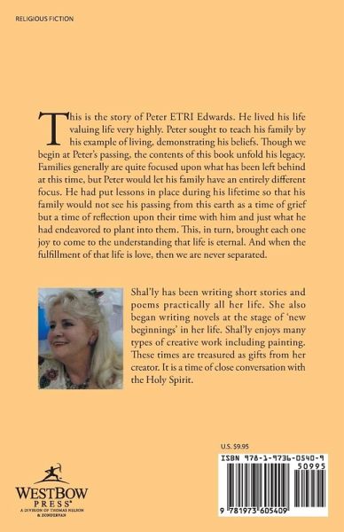 This is the story of Peter ETRI Edwards. He lived his life valuing life very highly. Peter sought to teach his family by his example of living, demonstrating his beliefs. Though we begin at Peter’s passing, the contents of this book unfold his legacy. Families generally are quite focused upon what has been left behind at this time, but Peter would let his family have an entirely different focus. He had put lessons in place during his lifetime so that his family would not see his passing from this earth as a time of grief but a time of reflection upon their time with him and just what he had endeavored to plant into them. This, in turn, brought each one joy to come to the understanding that life is eternal. And when the fulfillment of that life is love, then we are never separated.